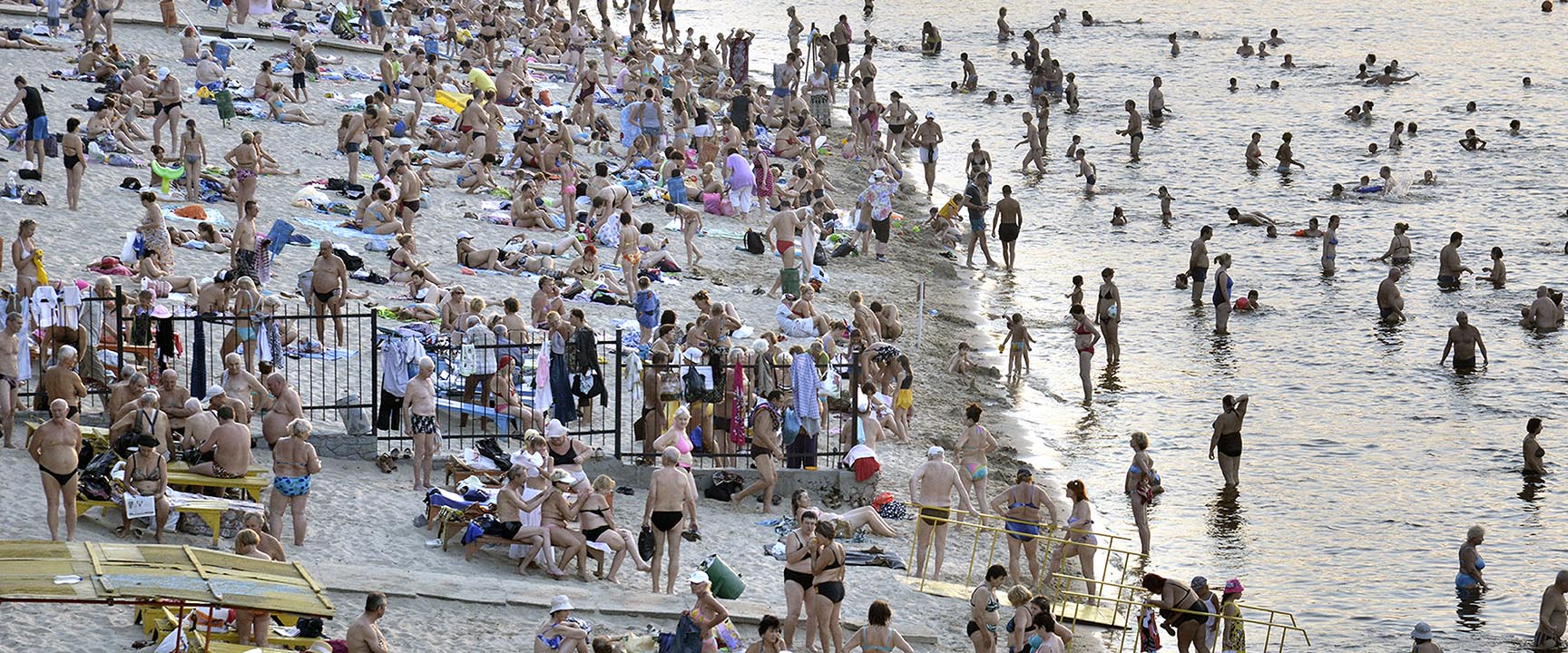 With the Crimea gone to Russia many are rethinking their summer vacation plans. Lots of folks are poised to take a train to the cheaper, less-sophisticated Black Sea and Azov Sea resorts. Technically any Ukrainian national can go to Crimea. But for many it is not unlike sleeping with the enemy now. In Central Ukraine, the Dnieper beaches (below) are an acceptable alternative. The better-off stream to the Turkish, Greek, and Italian stamping grounds.